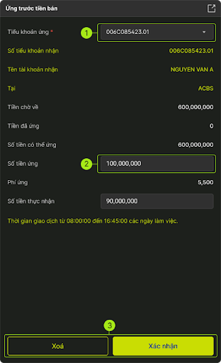 - Nhấn “Xác nhận” ở hộp thoại Xác nhận ứng tiền